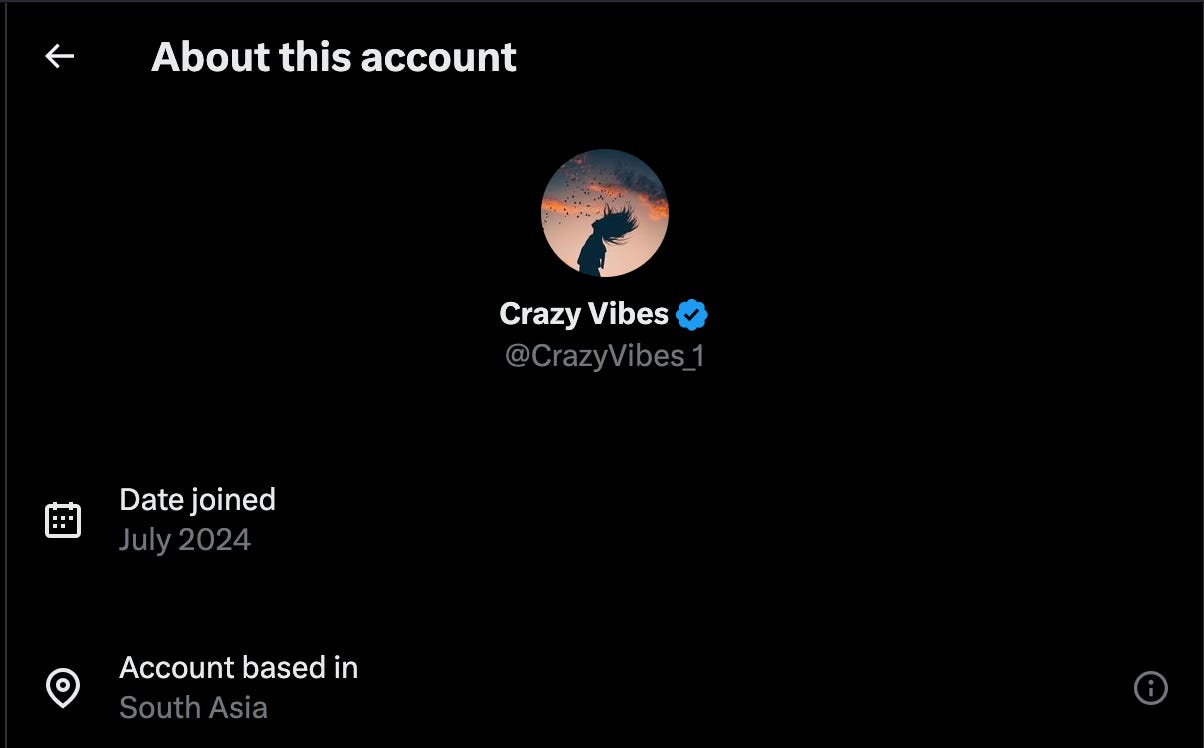 Many such accounts have removed or obfuscated their location indicators after X rolled out its new profile transparency feature that shows where an account is based (and ought to show much more, in my opinion, but this is better than nothing).
